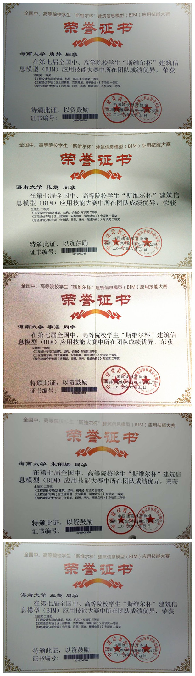 获奖证书