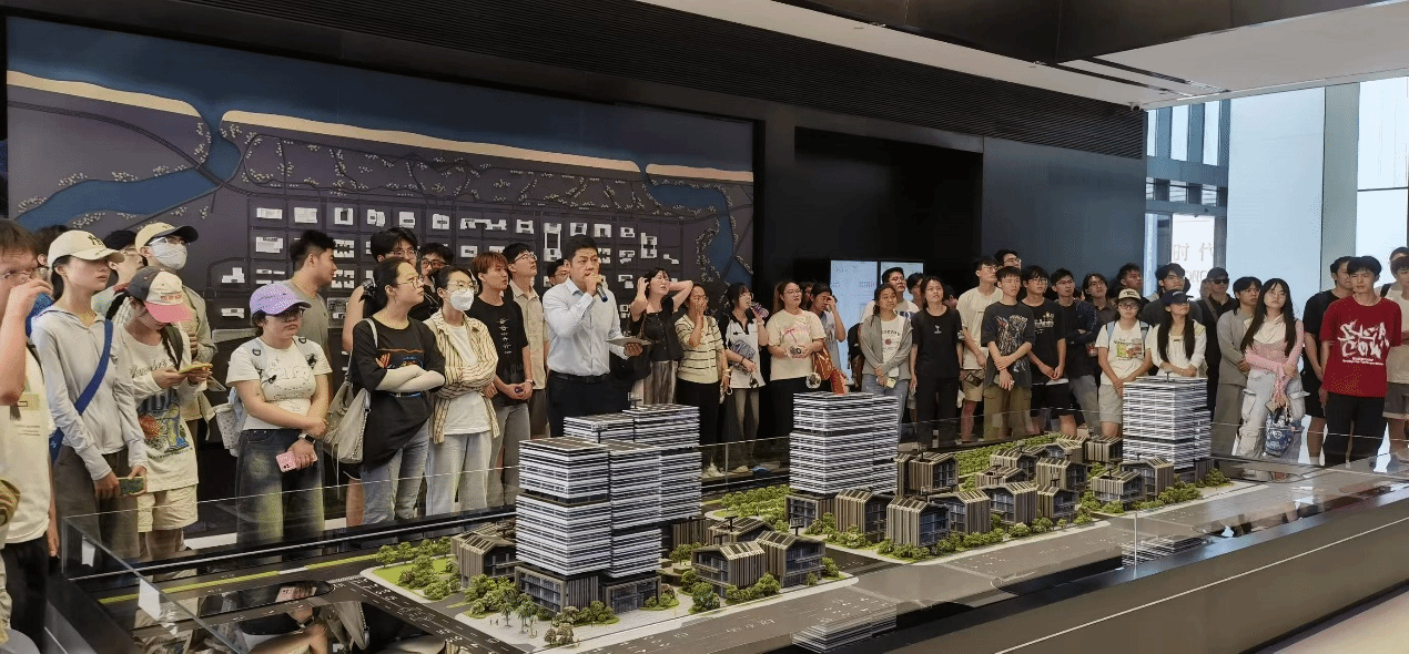 活动聚焦“工程实践与绿色发展”主线,项目团队带领师生深入工地一线,先后观摩了项目展示区、绿色建筑施工关键工艺及低碳技术应用场景,并结合海南地域特点,分享了项目应对“摩羯”百年一遇台风的灾后重建经验。通过现场讲解,员工们直观了解了绿色建材应用、节能设计优化、BIM技术集成等前沿实践,同时深刻认识到防灾韧性设计在沿海地区工程建设中的重要性。