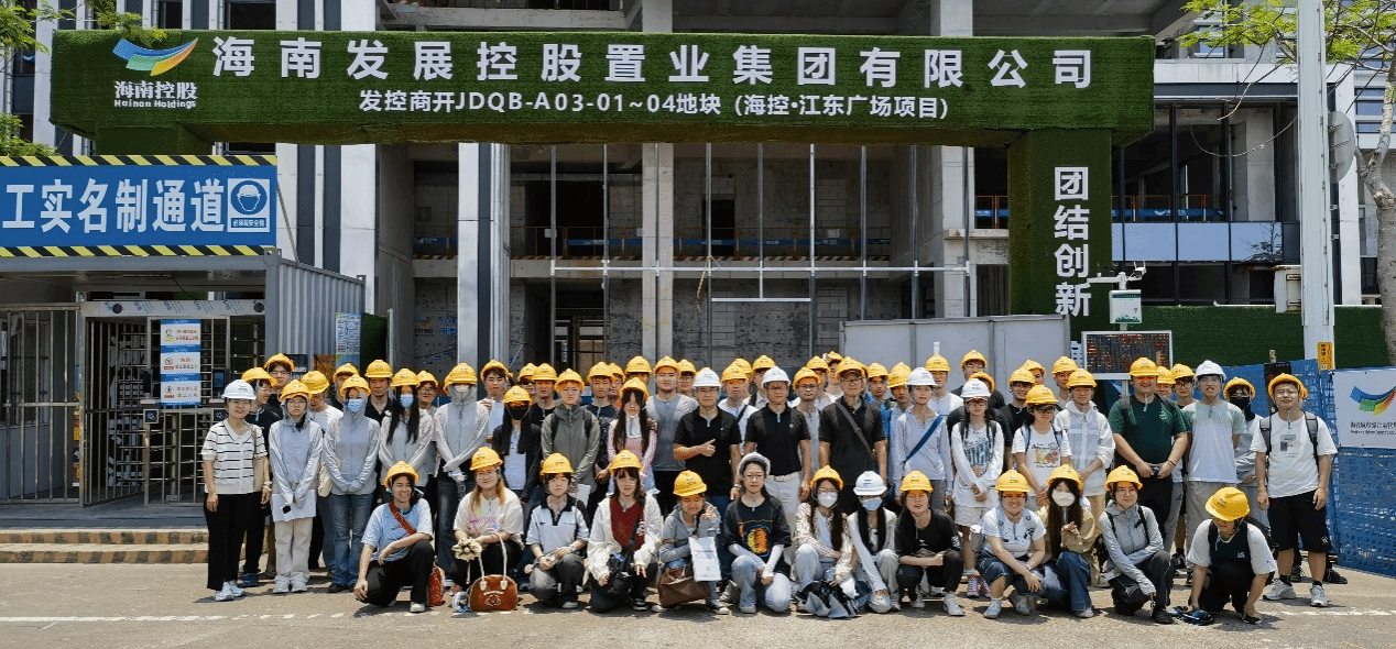 海口,2025年5月9日上午——为深化产教融合、践行实践育人理念,伟德BV1946官网建筑系2021级66名师生在夏桂平、齐飞两位老师的带领下,走进江东新区海控•江东广场项目工地,开展了一场以“绿色建筑实践与台风灾后重建经验”为主题的现场观摩学习活动。此次活动通过实地研学、校企互动和党建引领等形式,助力员工提升专业素养,赋能自贸港绿色低碳建筑高质量发展。