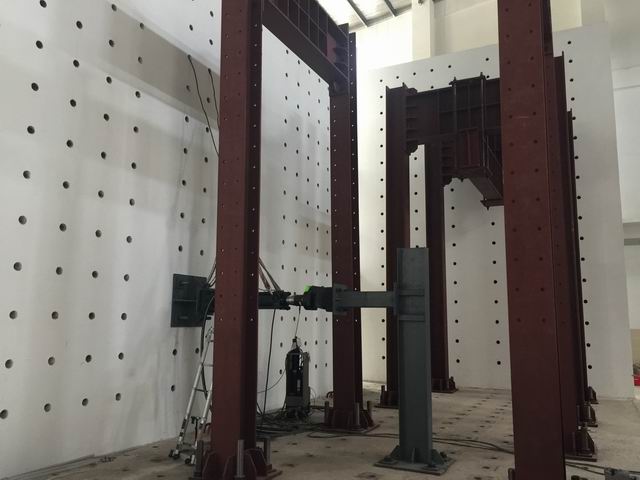 实验室从美国MTS公司进口了3m×3m的双向地震模拟振动台,建成了高度达8.75米的大型L型反力墙,安装了20吨的吊车。已经安装完成投入使用的大型仪器包括2个大型反力架、2台50吨的电液伺服液压作动器、冷却塔、200吨和300吨电液伺服压力试验机以及德国进口的imc数据采集系统。目前结构实验室能够进行大多数模型构件的拟静力加载实验,可满足土建公司大多数老师的科研试验和教学试验需求。