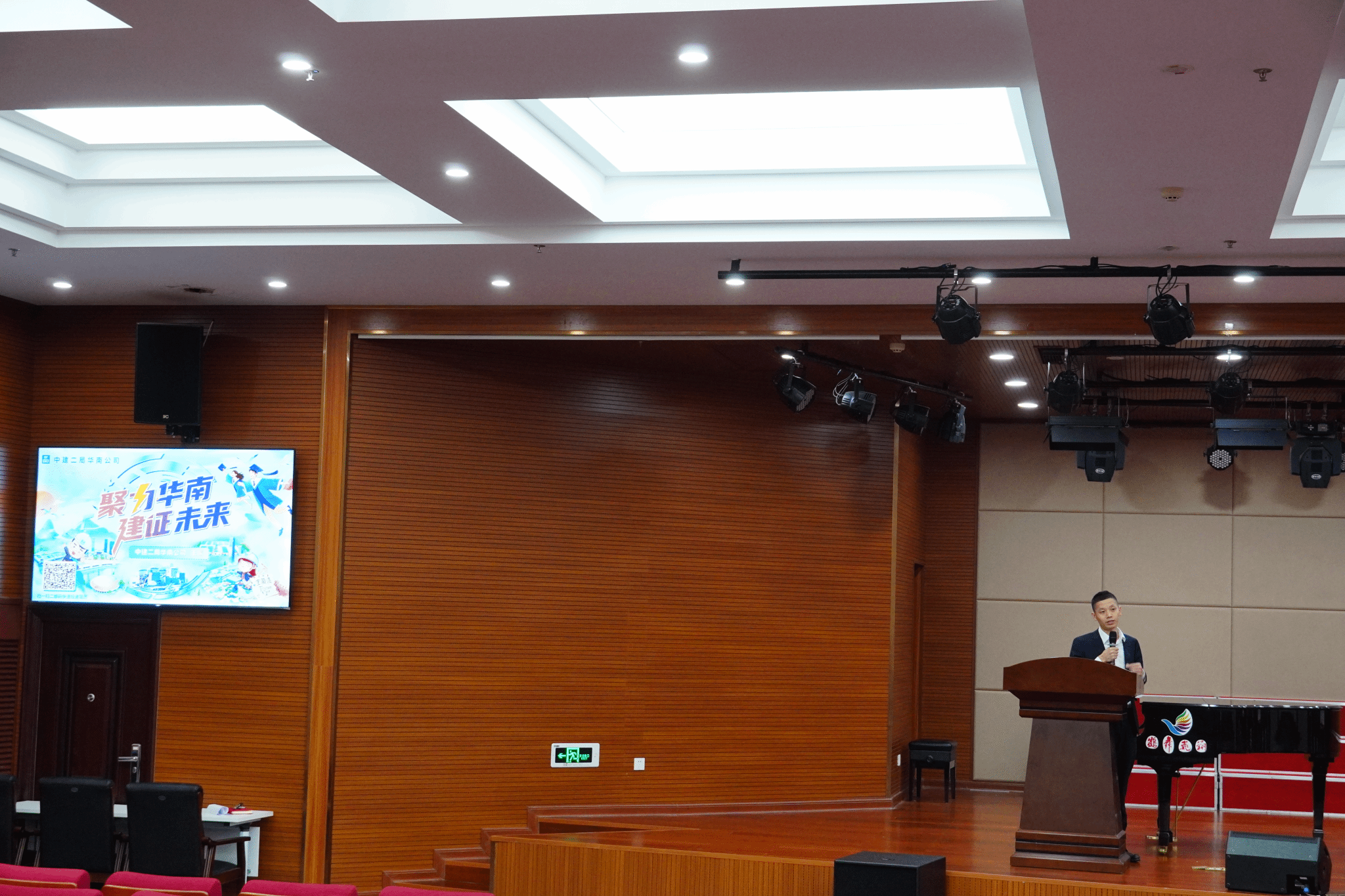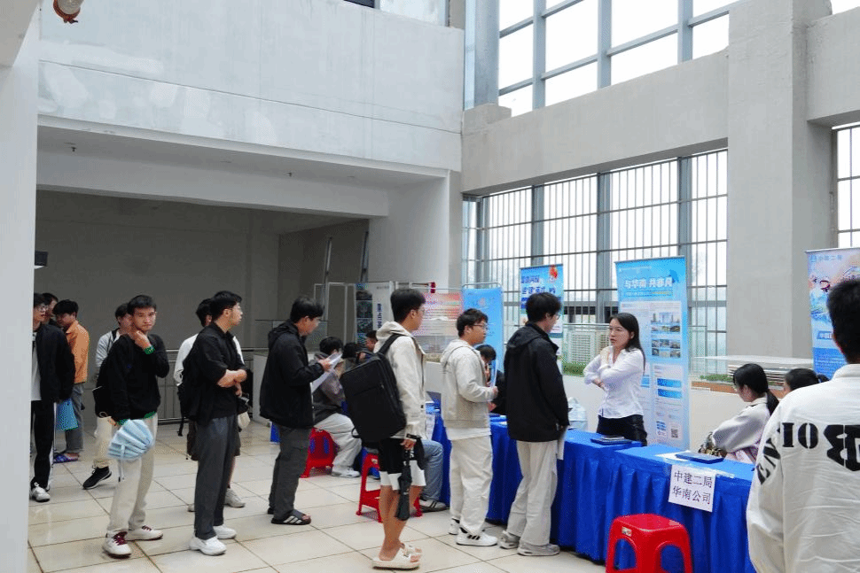 椰风书院吴新老师从书院人才培养与就业服务角度,为毕业生解读了就业支持政策与资源获取渠道。随后,中建一局一公司、中建二局华南公司、中建四局华南公司、建华控股四家企业代表先后宣讲,详细介绍企业发展概况、岗位需求、薪资待遇与职业发展路径。
