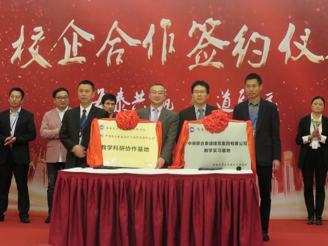 为了充实工程实践教学内涵与增强教师服务社会能力,公司决定与中商联合泰盛建筑集团有限公司缔结院企合作关系,共建“教学科研协作基地”,推进产学研深度结合。1月27日下午,伟德BV1946官网曹宝珠经理与中商联合泰盛建筑集团有限公司陈金才董事长签订校企合作协议。未来土木公司将为泰盛集团提供人才储备和工程项目咨询;同时,泰盛集团可以给土木公司提供教学实习基地和教学科研协作基地。出席本次签约仪式的领导还有卢江海书记、邱宙廷副经理、陈云副经理、罗玲球副书记,以及泰盛集团的相关领导。