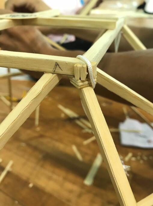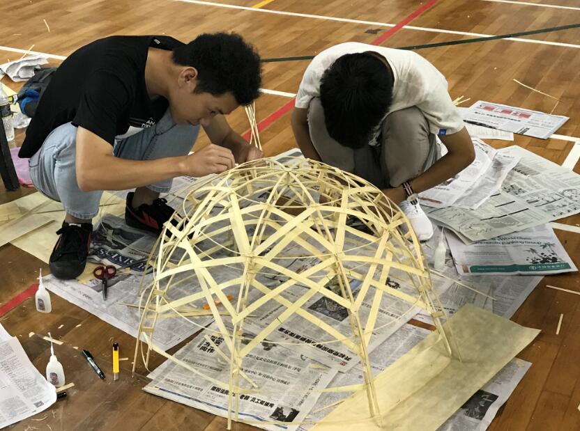 截至6月10日中午12点,模型制作已进行14个小时。在这14个小时中,模型制作现场气氛紧张而安静,各参赛队伍之间充斥着无声的硝烟,而队伍内选手之间配合默契,有条不紊。无论是竹片裁剪,还是杆件打磨、节点粘合,每位队员都心无旁骛,一丝不苟。