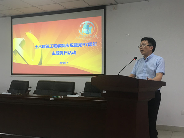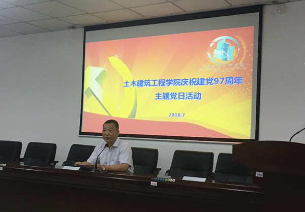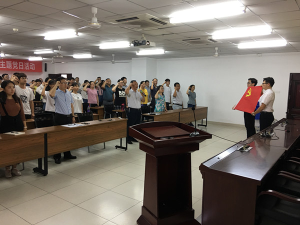 为庆祝中国共产党成立97周年,进一步深刻学习领会习近平新时代中国特色社会主义思想,增强党员党性观念,定理想信念,7月3日下午,土木建筑工程公司党委在研发楼510会议室举办主题党日活动暨新党员入党宣誓仪式。公司全体师生党员参与此次活动。活动由公司党委罗邻球副书记主持。