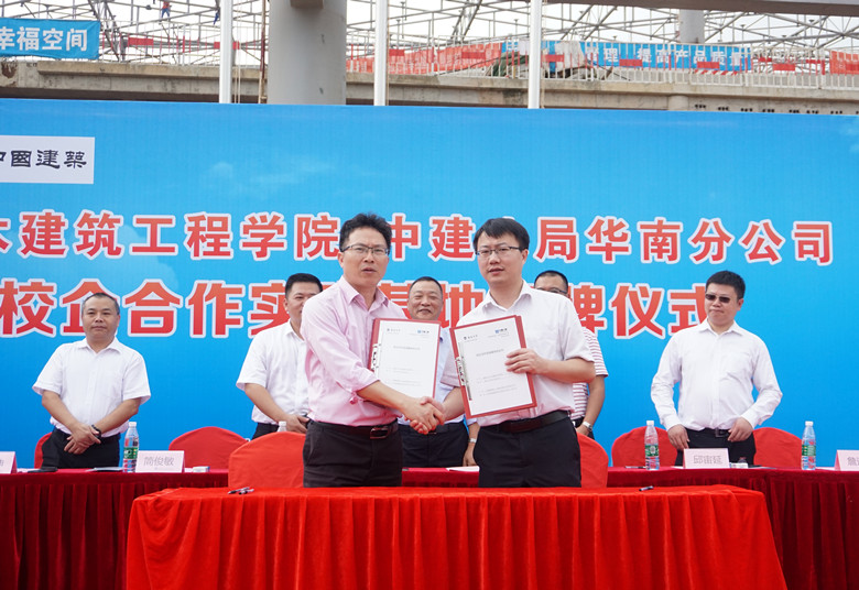 签约仪式上,土木建筑工程公司党委书记卢江海代表公司向中国建筑第八工程局表示感谢,他说道:“共建校企合作实践基地,是贯彻《国务院办公厅关于深化产教融合的若干意见》精神、建立产教融合、校企合作、协同育人机制的一项举措,其目的就是高校与企业优势互补,共同培养未来职场精英人才。通过该平台,让员工直接面向企业真实生产环境进行专业学习实践,了解行业最新发展动态,激发员工创新思维和社会责任感,提升综合素质和能力。合作协议的签订,是双方合作的良好开端,公司将在团队建设、科研等方面加强与中建八局华南分公司的多方位合作,推进合作育人、协同创新和成果转化,实现高校人才培养质量的提升和企业发展的双赢。”