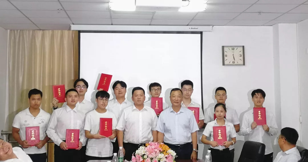 经现场评委们讨论评定,最终李明昆、义嫔、杨绍泽等10名同学评定为优秀实习生,并在会上进行表彰; 全部22名本科实习生均通过实习评定并提前被中建八局华南分公司预录就业。
