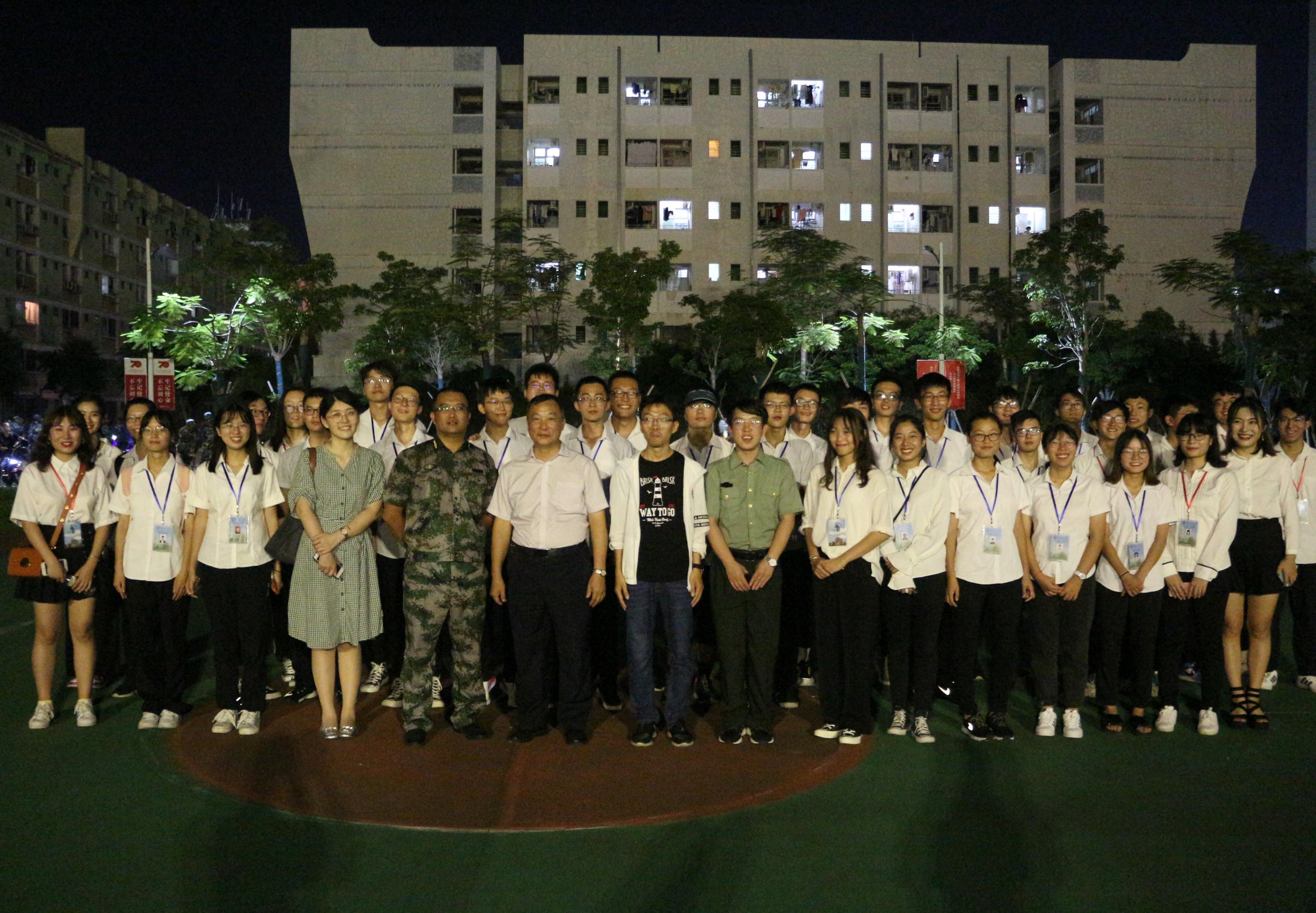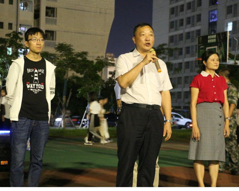 9月12日晚,2019级军训慰问活动在李运强楼前篮球场举行。伟德BV1946官网经理周智、党委卢江海书记、党委罗邻球副书记,辅导员李江俊老师、詹达夫老师、白玉老师、牛玉老师以及2019级土木工程一班班主任董金爽参加了慰问活动。