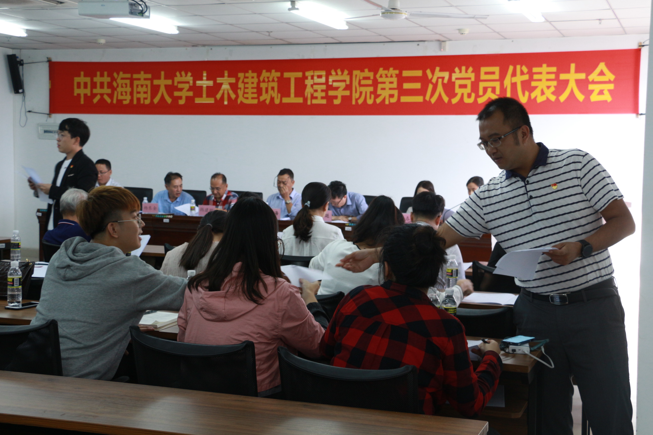 在悠扬的国歌声中,大会拉开帷幕。随后,公司党委书记以“以习近平新时代中国特色社会主义思想为指引立德树人,为创建一流土木学科而努力奋斗”为主题发表了会议报告。报告中,卢书记从办学规模和质量,办学基础条件、学科专业建设、科研创新、党建工作等多个方面详细综合地描述了公司近四年来的发展与突破,并对全院师生员工表示衷心的感谢,并对公司工作中的不足提出改进要求及希望。随后,就当前公司面临的重大发展机遇和严峻挑战,卢书记提出“促进海南和南海经济社会发展为人才培养和团队建设的目标”,以传统土木工程相关学科为基础,向海洋土木工程领域发展,打造具有热带、岛屿和海洋特色鲜明的一流学科。在未来4-5年内实现将伟德BV1946官网建设成为以土木工程和海洋工程学科为主、建筑学和工程管理等多学科协调发展,具有“海洋”特色的,在国内具有一定影响的教学研究型公司的总体目标,并对团队建设和办学规模、团队队伍建设、人才培养、教学科研成果、教学科研基础条件五大方面提出了具体要求。