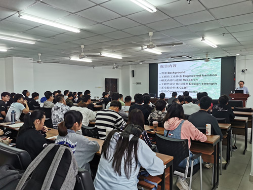 肖岩教授总结性的介绍了课题组十余年有关现代竹结构的研究。竹结构及其他生物质材料在建筑业节能减排中具有重要意义。给出现代工程竹结构的定义、工业化的发展方向。在此大背景下,课题组进行了材料、构件、工法及结构体系的系统研究,及系列工程示范。报告人近期也提出了正交胶合竹木(简称CLBTCLTB)并进行了初步实验验证。报告会现场,公司师生踊跃与肖岩教授交流互动,现场提问热烈。通过学术报告会,极大地提升了公司的学术氛围和研究生的学术水平。