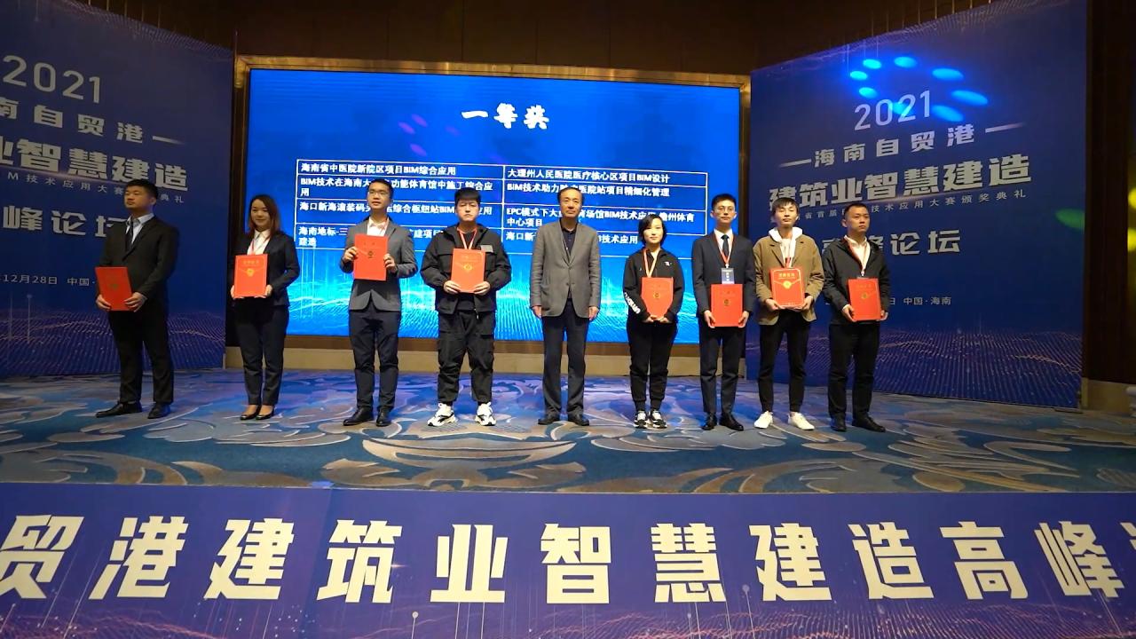 2021年12月28日,由海南省住房和城乡建设厅指导,海南省建筑业协会、海南省勘察设计协会、伟德BV1946官网主办的2021海南自贸港建筑业智慧建造高峰论坛暨海南省首届BIM技术应用大赛在海口圆满落幕。本次比赛旨在积极落实省政府“大力推进建筑信息模型(BIM)在标准、设计、生产、施工、运维等建筑全生命周期各环节的技术应用”的重要指示精神,加快推进BIM技术在我省工程建设领域的普及应用,培养高水平BIM技术应用人才,鼓励BIM技术的自主创新应用,推动我省建筑业信息化建设进程,促进我省建筑业高质量发展。