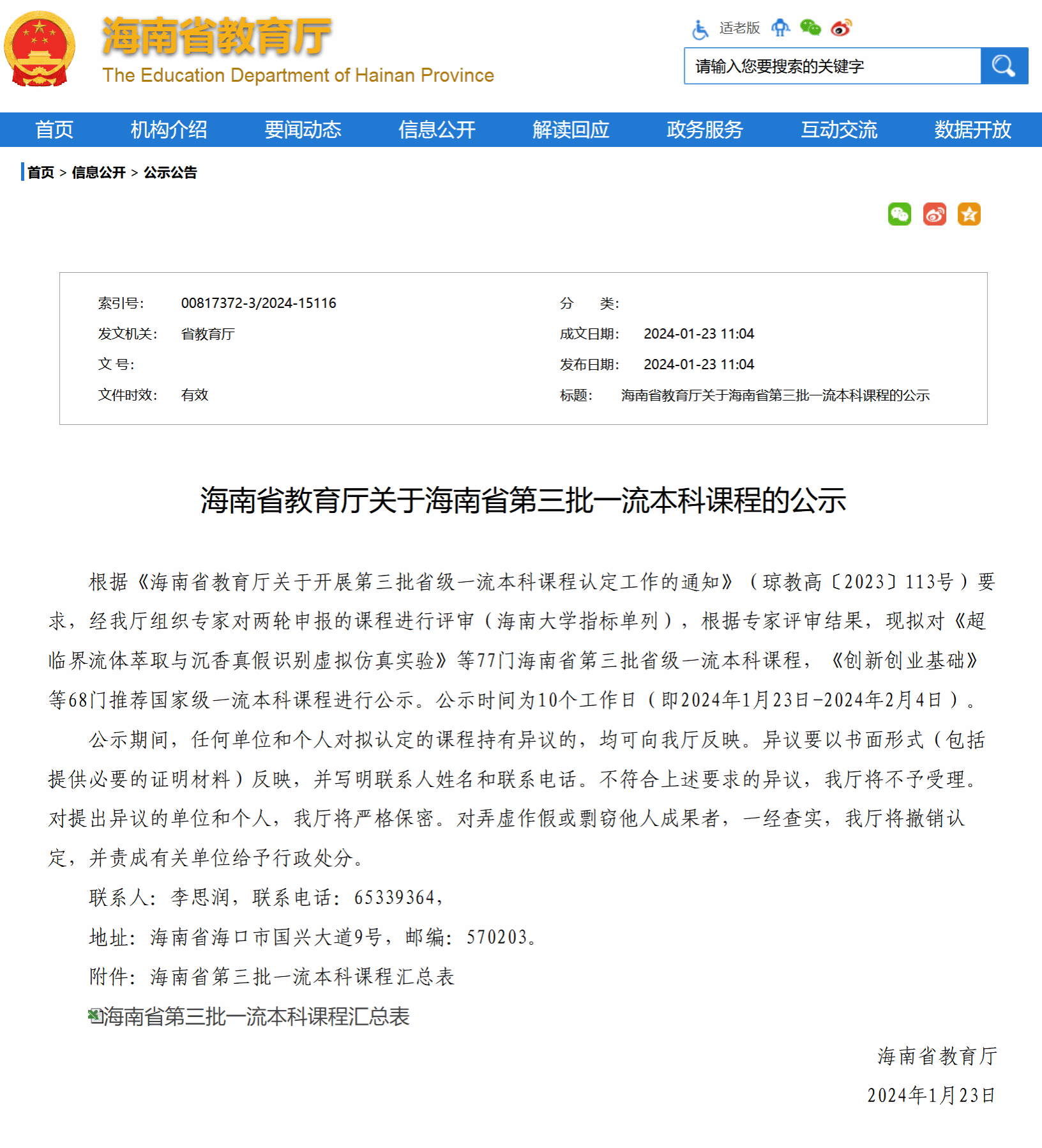 海南省教育厅认定公司《土力学》课程为海南省一流本科课程