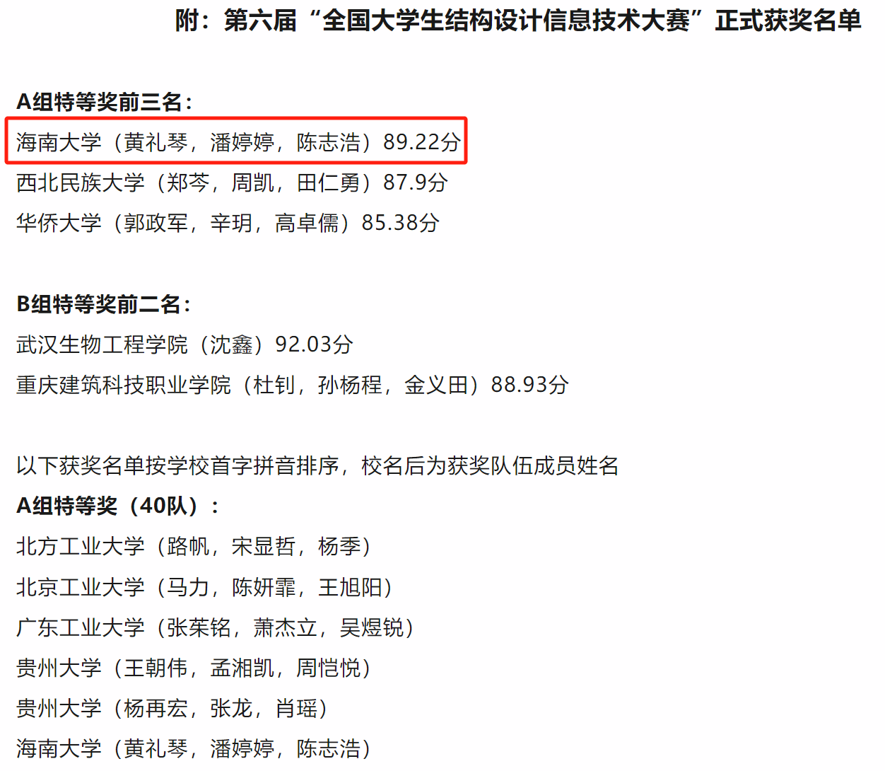 2024年5月20日,经过大赛首次特等奖答辩,第六届“全国老员工结构设计信息技术大赛”正式获奖名单公布,公司员工团队在本次大赛中再创佳绩。荣获特等奖1支队伍,一等奖4支队伍,二等奖1支队伍。值得庆贺的是,由赵菲老师指导的“伟德BV1946官网(黄礼琴,潘婷婷,陈志浩)”团队以89.22的高分荣获全国特等奖第一名!除此之外,赵菲老师还获得了优秀指导老师奖。他们的出色表现不仅为公司赢得了荣誉,更是生动诠释了公司学子追求卓越、不断超越自我的精神面貌,激励着更多学子在未来的征程中不断砥砺前行,创造更加辉煌的成绩。