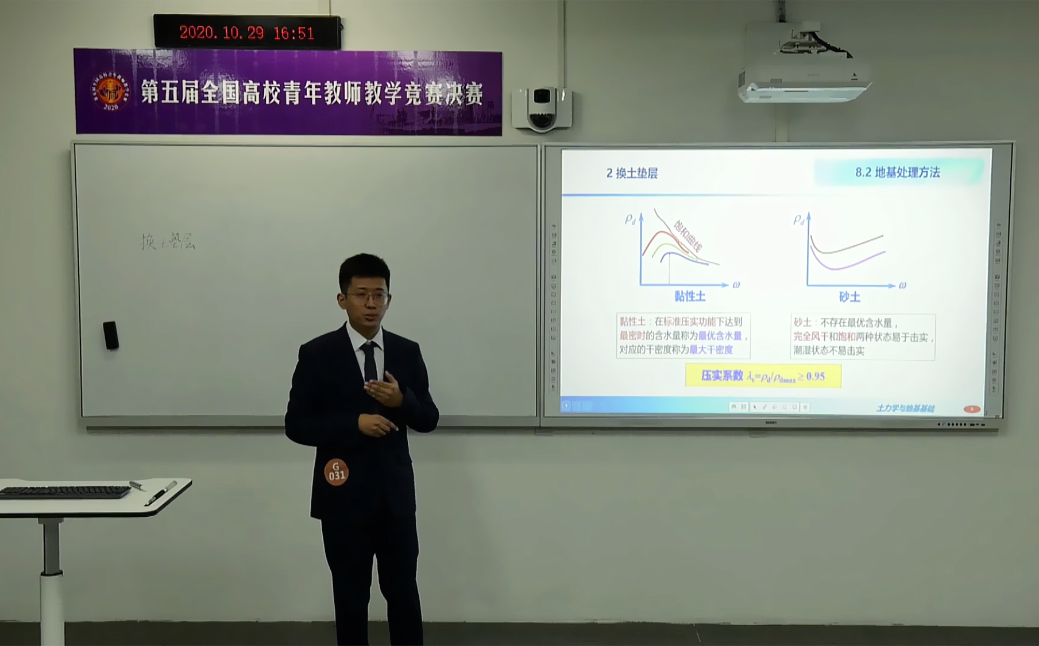 路平老师的参赛课程名称为《土力学与地基基础》。“九层之台,起于垒土”,可见地基土在工程建设中的根基地位;在当前海南自由贸易区建设的战略部署下,高峡平湖、穿江跨海、基深千尺、楼高万丈,土力学与地基基础贯穿着每一个工程领域。参赛课程随机抽取的演示内容为20-地基处理方法”,围绕软弱地基处理中要遵循的三个原则,针对两大类处理方法,利用生活中简单的豆腐受压类比,从现象出发,探究机理,提炼方法。课堂巧用鱼豆腐、冻豆腐的引入,提高员工的学习兴趣,加深员工的感性理解,从承载力的验算方法展开逐层讨论,频繁提问,让员工跟着走,升华认知。让专业回归基础,理论联系实践;课程思政如盐入水,研究前沿启发创新。课程深刻体现了以员工为本”的教学理念,知识传授是基础,能力培养是重点,价值塑造是提升。