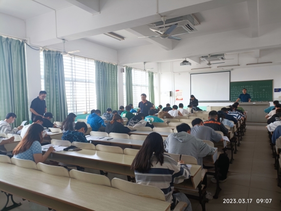 两位领导认真查看了考场秩序、监考人员履职、考生出勤、考试纪律、考生答卷等情况并指定监考教师按阶梯教室“隔行隔位”要求安排员工的座位。从巡查现场看,考试组织规范有序,监考人员认真履行监考职责,员工遵守考试纪律,各考场秩序井然。