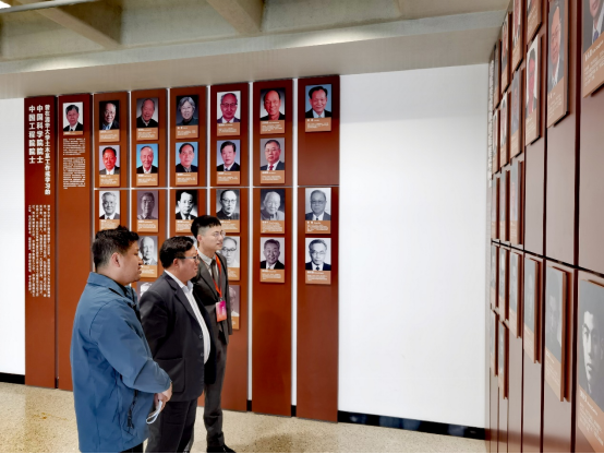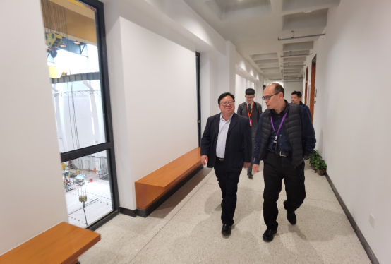 周智经理(左一)与清华大学土木工程系系主任冯鹏教授(右一)调研结构工程实验室