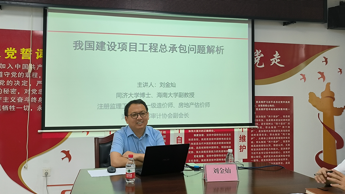 2022年6月9日,公司工程管理系副教授刘金灿老师受邀前往保亭县审计局、住建局,分别作业务能力提升讲座,助力政府部门干部能力提升建设。这是伟德BV1946官网与保亭县政府签署政校合作框架协议及伟德BV1946官网与保亭县审计局、住建局订立合作协议之后举行的系列活动之一。