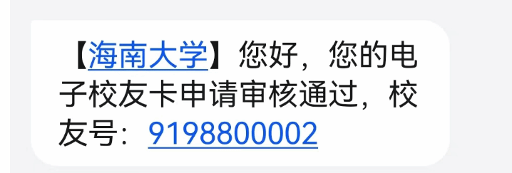 员工根据短信提示信息,一个小时后登录海大e卡小程序,申领员工卡。