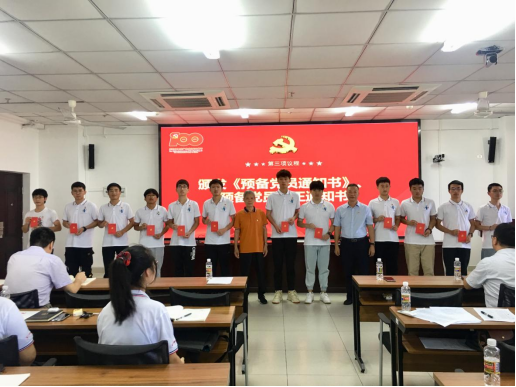 会议第二个阶段,公司党委召开新党员入党宣誓大会。党委委员邱宙廷同志宣读公司党委《关于接收林思宇等51名同志为中国共产党预备党员的通知》《关于批准预备党员转正的通知》文件。全体党员进行入党宣誓和重温入党誓词,卢江海书记领誓。公司党委为新发展党员、新转正党员颁发《预备党员通知书》《预备党员转正通知书》。新发展党员代表周南同志作入党表态发言。
